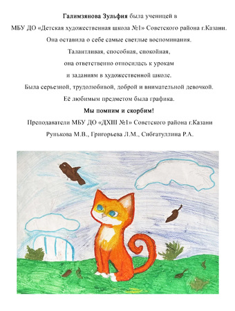 Я помню Зульфию очень доброй, чуткой, спокойной, старательной, аккуратной, внимательной девочкой. Она никогда не повышала голос, не ругалась. Всегда старалась принимать активное участие в классных и школьных мероприятиях, посещала с нами экскурсии, с одноклассниками были дружеские отношения. ;Никогда не нарушала школьный режим. Внешне очень опрятна и аккуратна, ходила на уроки всегда в школьной форме. Пропуски занятий были только по уважительной причине. Любое поручение учителей выполняла ответственно. Ценила дружбу с одноклассниками и никогда их не подводила. Она навсегда останется в памяти для меня скромной, милой, спокойной девочкой.